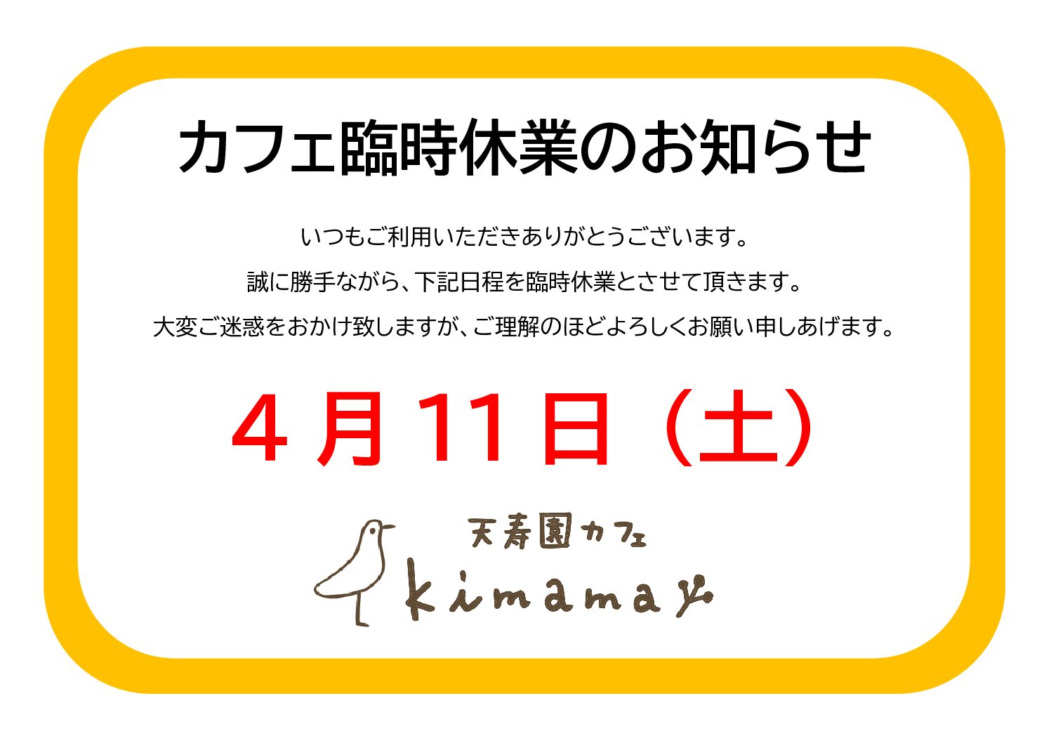 いつも天寿園カフェkimamaにご来店いただきありがとうございます。
